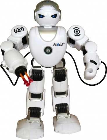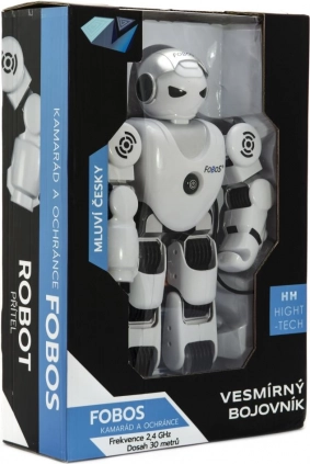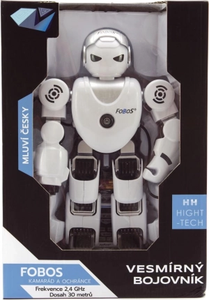 Der Weltraum-Roboter FOBOS ist ein interaktiver Freund, der Tschechisch spricht, per Fernbedienung bis zu 30 m gehorcht, bis zu 50 Schritte programmieren kann, 19 Funktionen und 70 Sprachsätze hat. Er bewegt die Arme, läuft, dreht sich, feuert 5 Geschosse ab und ist dank USB-Aufladung schnell einsatzbereit.