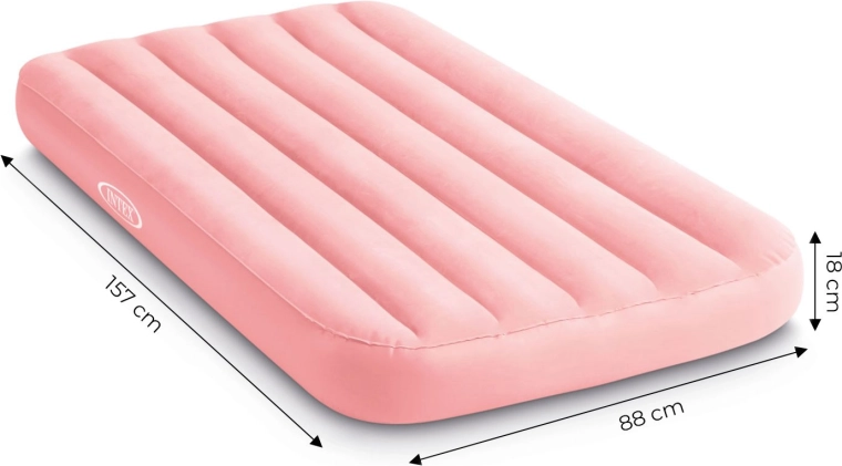Diese rosa Kindermatratze von INTEX ist eine hervorragende Wahl für Übernachtungen von Freunden, Urlaubsreisen und die tägliche Erholung. Das robuste PVC mit feinem Veloursbezug ist angenehm anzufassen und rutscht nicht, was Komfort und Sicherheit beim Schlaf erhöht.