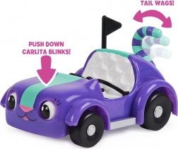Das Auto Carlita ist halb Katze und halb Auto. Auf die Sitze passen Pandy und eine weitere Figur aus Gabbys magischem Häuschen. Fahre mit Carlita, und sie wird mit dem Schwanz wackeln. Drücke auf die Motorhaube und sie wird blinzeln. Drücke auf die linke und rechte Seite, damit sie nach links und rechts schaut. Das Set enthält das Auto, die Pandy-Figur, eine Picknickdecke, eine Kühlbox und eine Überraschungsbox. Geeignet ab 3 Jahren.