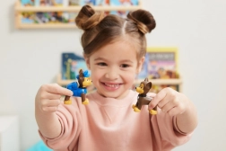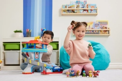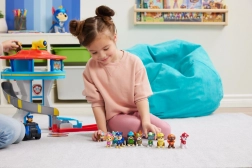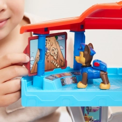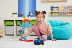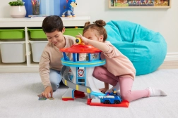 Platziert Chase in Zivil an der Vorderseite des Aufzugs und Chase als Held am hinteren. Hebt den Aufzug und beobachtet, wie Chase in Zivil sich in Chase als Held verwandelt. Wählt oben im Turm eine der 3 doppelseitigen Missionskarten und erfahrt, was die Aufgabe des Tages ist. Wenn es Zeit für einen Rettungseinsatz ist, saust die Rutsche hinunter direkt in das Polizeiauto von Chase und startet das Abenteuer, indem ihr den Auto-Werfer drückt. Für noch mehr Spaß könnt ihr weitere Welpen wie Marshall, Skye und Rubble mit ihren Fahrzeugen sammeln.