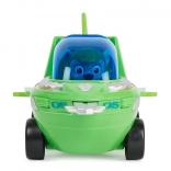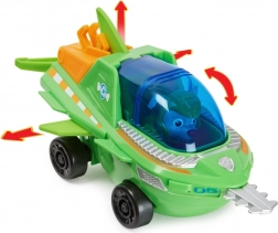 Rocky in einem pilotenartigen Rettungsauto für Wasserwelpen.