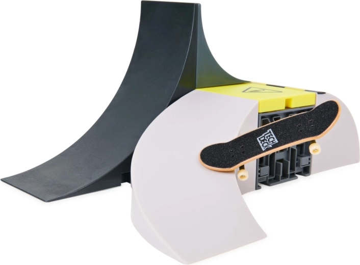 Baue dir deinen eigenen Mini-Skateboard-Park mit dem Xconnect-Set Hochspannung. Stelle Kombinationen mit verschiedenen Rampen und Hindernissen zusammen, um neue Tricks zu lernen. Enthält: 1 Tech Deck Fingerboard, 1 rechteckiges Panel, 1 Kurvenrampe, 1 Anfahrrampe, 1 umgekehrte Anfahrrampe, 2 Träger, 1 große Anfahrrampe, 2 kleine Stützen, 8 X-Verbinder, 5 große X-Verbinder, 8 Füße, Anleitung.