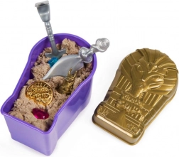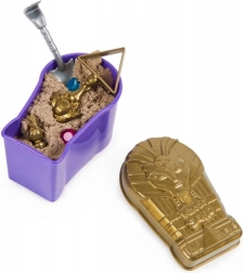 Grabe und enthülle Artefakte, Edelsteine und die Geheimnisse der Mumie. Jede Packung verbirgt eine von drei Figuren und die spannende Jagd nach der Goldmünze. Der formbare Sand behält angenehm seine Form und lädt zu endlosem, kreativem Spiel ein.