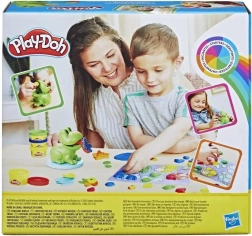 Das Spielset mit Frosch bietet spielerisches Lernen von Farben und Formen sowie die Förderung der Feinmotorik. Kinder können drücken, pressen und Formen ausstechen, Seerosen, Schmetterlinge und weitere kleine Wesen gestalten und dabei ganz natürlich die Auge-Hand-Koordination üben.