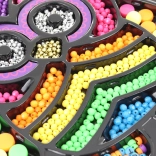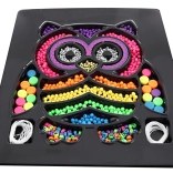 Das clevere Eulentablett mit getrennten Fächern erleichtert die Auswahl der Perlen und hält die Arbeitsfläche sauber.