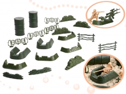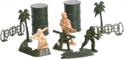 Enthalten sind rund 60 Soldatenfiguren in verschiedenen Posen sowie umfangreiche Komponenten zum Bau einer Militärbasis – Fässer, Zäune, Hindernisse, Palmen und mehr. Die Figuren sind ca. 5 cm hoch, stehen stabil auf ebenen Flächen und lassen sich leicht platzieren.