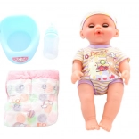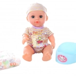 Kinder können das Baby mit dem Fläschchen füttern und auf das Töpfchen setzen. Die Pipi-Funktion unterstützt spielerisch das Erlernen hygienischer Gewohnheiten.