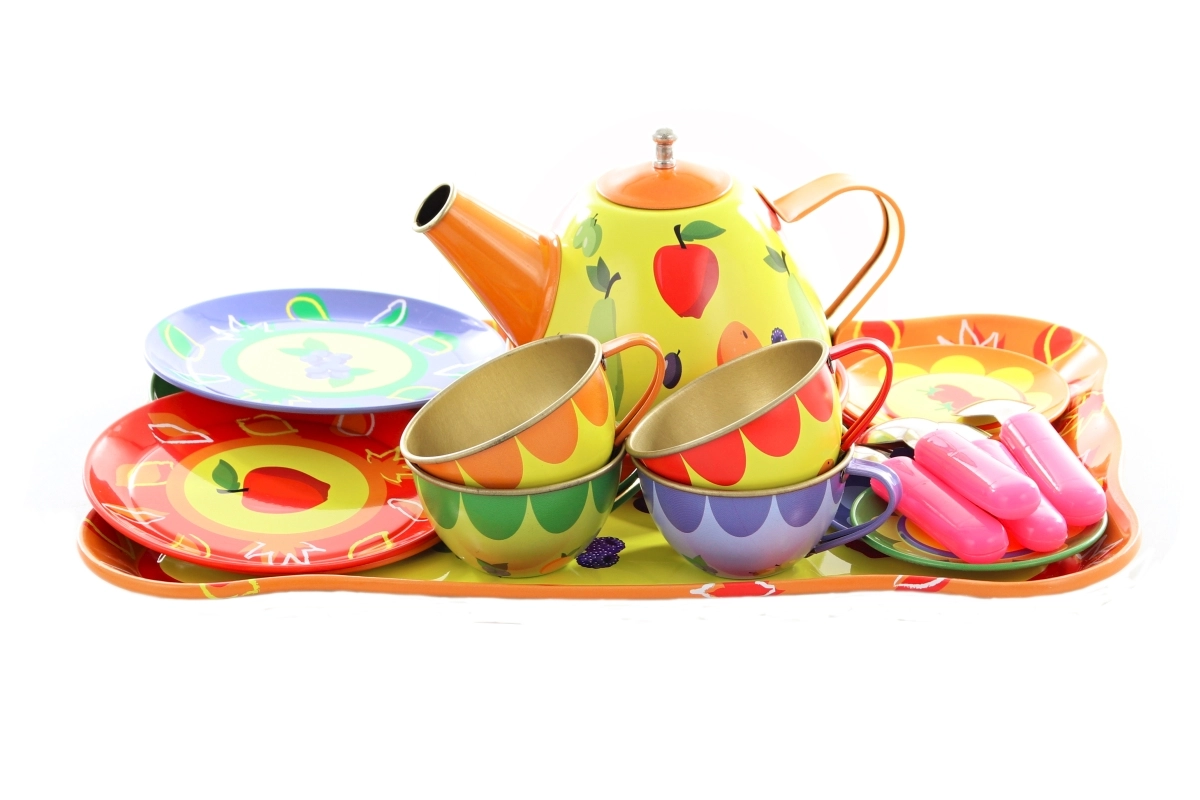 Das Kinder-Teeservice aus Blech in leuchtenden Farben ist die perfekte Wahl für kleine Gastgeberinnen und Gastgeber. Die Metallausführung ist leicht, zugleich aber robust genug für das tägliche Spiel. Dank der umfangreichen Ausstattung können Kinder ganz einfach ihre eigene Teeparty für Freunde und Plüschgäste veranstalten.