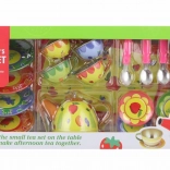 Obst- und Blumenmuster verleihen dem Set Verspieltheit und laden zu gemeinsamem Tischspiel und fantasievollem Rollenspiel ein.