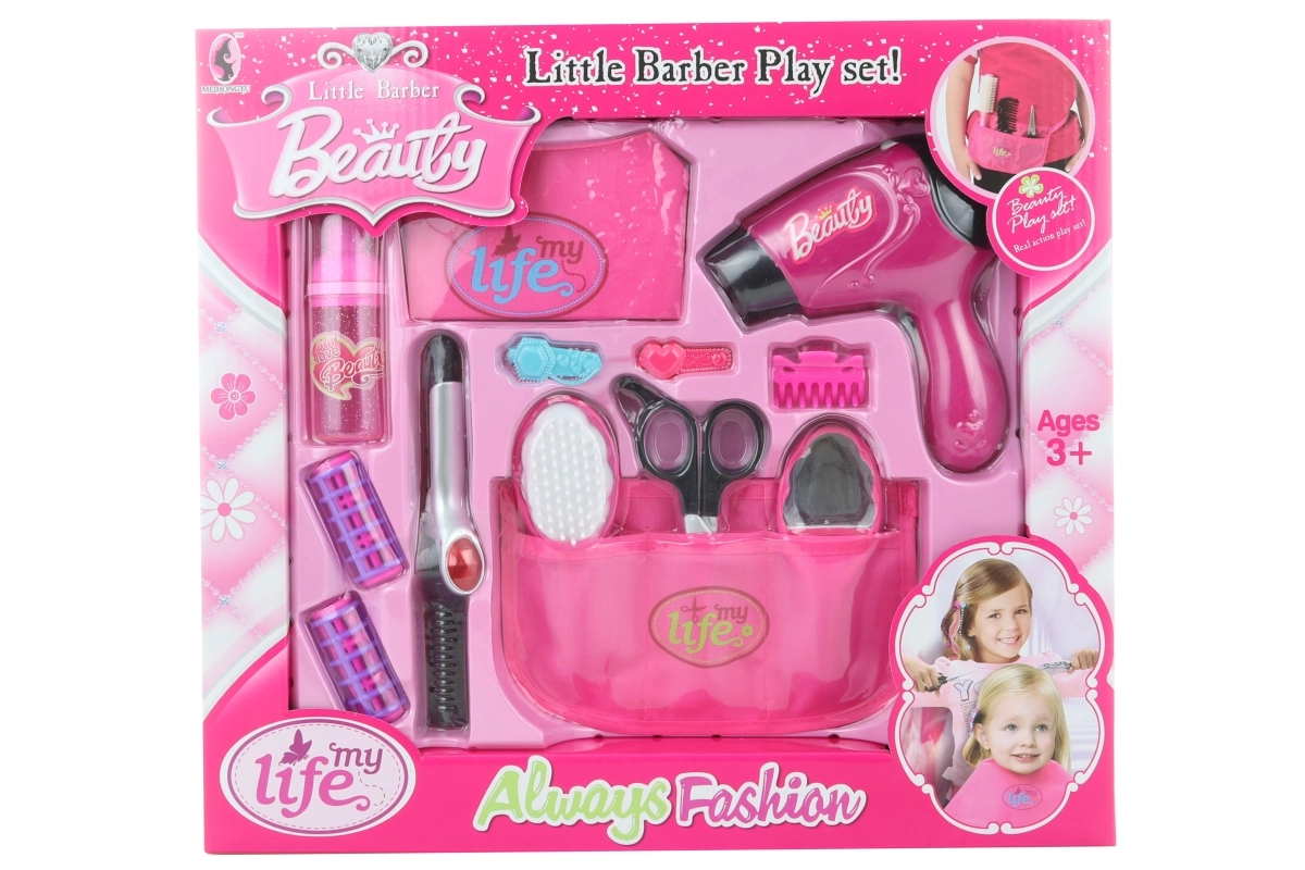 Dieses komplette Friseur-Set bietet alles, was man für ein fantasievolles Spiel im Schönheitssalon braucht. Kinder können Erwachsene nachahmen, ihre Geschicklichkeit trainieren und dank der umfangreichen Auswahl an Zubehör eigene Frisuren kreieren.