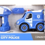 Entdecken Sie ein smartes Spielzeug, das Bausatz und RC-Auto in einem vereint. Kinder zerlegen und montieren das Polizeifahrzeug zunächst und trainieren dabei Geschick und Logik. Nach dem Einsetzen des Motors aus der Bohrmaschine in das Chassis verwandelt es sich in ein ferngesteuertes Auto mit Vorwärts-/Rückwärtsfahrt und Sounds, die für realistisches Spiel sorgen.