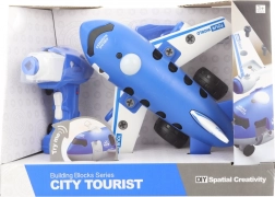 Das Flugzeug in blau-weißer Farbkombination besteht aus robustem Kunststoff und verfügt über realistische Details wie Fenster, Fahrwerk und Flügel. Im Lieferumfang sind ein Schraubendreher und eine Kinderbohrmaschine enthalten, die sowohl zur Montage als auch als Antriebsmodul dient. Das aufgebaute Modell misst ca. 26 × 25 × 14 cm – perfekt für Kinderhände.