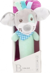 Dieses kuschelweiche Plüschrassel mit grünem Hündchen ist das ideale erste Spielzeug für Neugeborene. Dank Quietsche und Rasselgeräusch wird das Gehör stimuliert, während kräftige Farben und Kontraste die visuelle Wahrnehmung unterstützen. Die ergonomische Form erleichtert das Greifen mit kleinen Händchen.
