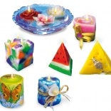 Mit diesem großen Set können Sie bequem zu Hause bis zu 9 Kerzen herstellen. Verschiedene Farben und Formen von Kerzen (Herz, Melone, Meeresmotiv, Schwimmkerzen, Käse und Maus, Mosaik usw.). Das Set enthält alles Nötige für die Herstellung (Paraffin, Gussformen, Farbstoff, Dochte, Acrylfarben, Kleber, Glitzer, Glasperlen, Satinbänder usw.). Das Set umfasst z. B. Wachsbasis, Schablonen, Becher, Förmchen, Draht, Perlen, Muscheln, Serviette mit Dekor, Farben, Band, Kleber, Schnur, Wachsmalstifte und vieles mehr. Packungsmaß 30 x 44 x 6 cm. Alter 7+. HERGESTELLT IN EUROPA