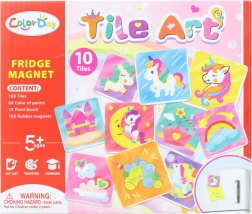 Entdecken Sie das unterhaltsame Set für Kinder zur Herstellung von Kühlschrankmagneten. Das Set enthält 10 Porzellanplättchen, 10 Magnete, 6 Farben und einen Pinsel – alles, was Kinder ab 5 Jahren für die Gestaltung eigener, origineller Dekorationen benötigen.