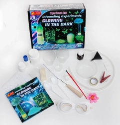 Mit diesem Set kann Ihr kleiner Experimentator die faszinierenden Eigenschaften des Leuchtens im Dunkeln entdecken. Das Set enthält alle benötigten Materialien, einschließlich Schutzbrille und detaillierte Anleitungen auf Deutsch.