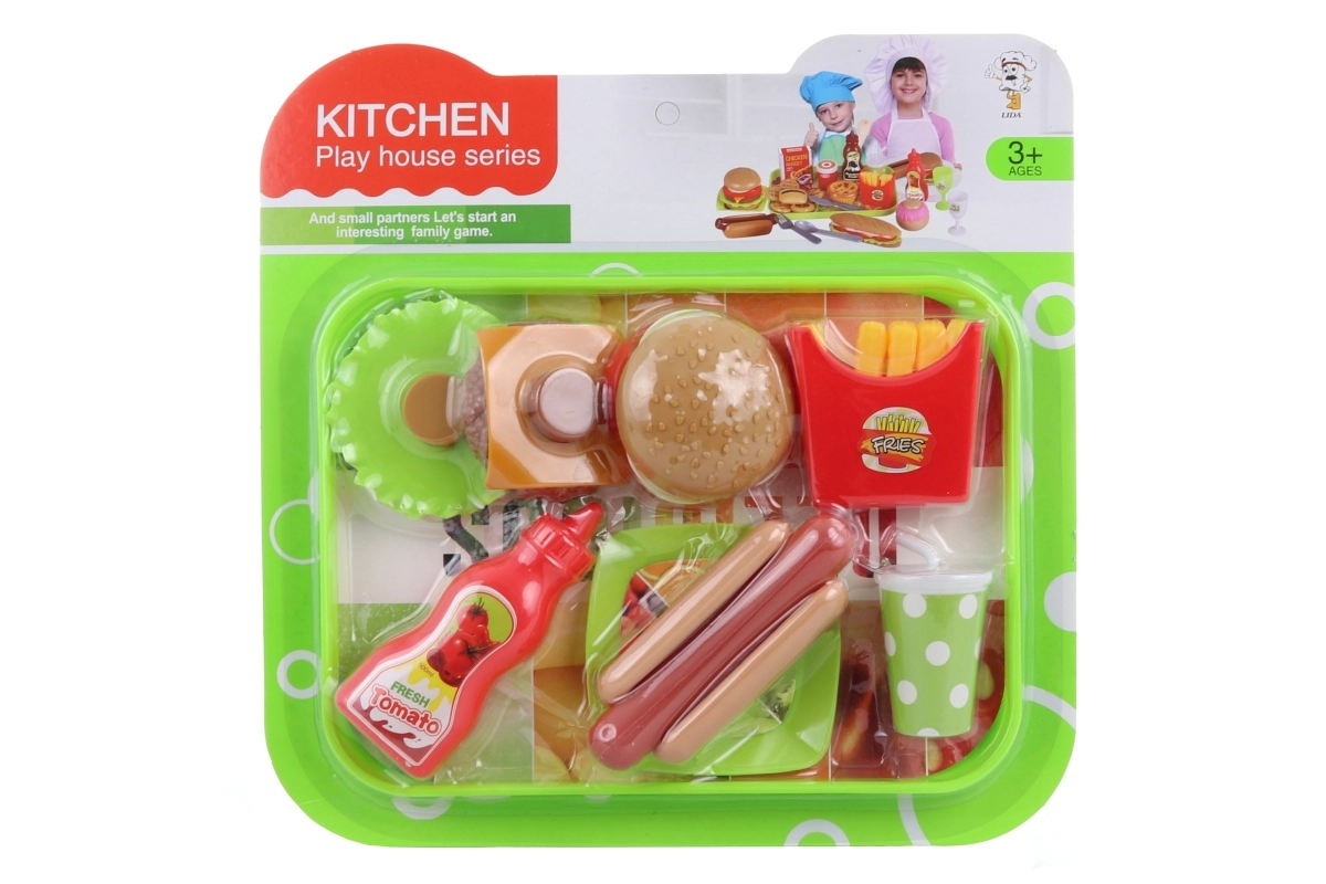 Dieses Fastfood-Spielset begeistert alle kleinen Fans von Kochen und Servieren. Der Hamburger lässt sich leicht in einzelne Zutaten zerlegen (Brötchen, Salat, Patty, Käse, Tomate, Mayonnaise), sodass Kinder ihr eigenes „Menü“ zusammenstellen und Fantasie sowie Fähigkeiten entwickeln können.