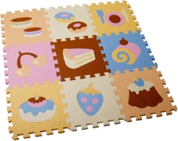 Schaffen Sie für Kinder eine sichere und verspielte Ecke mit der bunten Schaumstoff-Puzzlematte mit Leckereien-Motiv. Die einzelnen Teile lassen sich leicht ineinanderstecken, beliebig erweitern und kombinieren. Die Unterlage ist weich, angenehm anzufassen und bodenschonend.