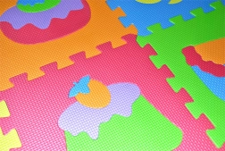 Dieses Schaumpuzzle mit Lebensmittelmotiven ist ideal als Spielteppich fürs Kinderzimmer. Durch das weiche Material ist es sicher, angenehm anzufassen und leicht zu pflegen. Die gerippte Oberfläche sorgt für bessere Stabilität beim Spielen und minimiert das Rutschen.