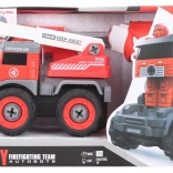 Entdecken Sie ein cleveres Spielzeug, das Feinmotorik und Fantasie fördert: Mit dem beiliegenden Schraubendreher oder der Bohrmaschine bauen Kinder das schraubbare Feuerwehrfahrzeug im Handumdrehen zusammen. Der Motor kann aus der Bohrmaschine entnommen, in das Auto eingesetzt und schon haben Sie ein ferngesteuertes Fahrzeug, das vorwärts und rückwärts fährt. Durch Licht- und Soundeffekte wirkt das Spiel noch realistischer.