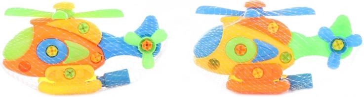 Schraubbarer Hubschrauber für Kinder 19 cm aus robustem Kunststoff. Inklusive Schraubendreher, verpackt im Netz. Fördert Motorik und logisches Denken. Alter 3+.