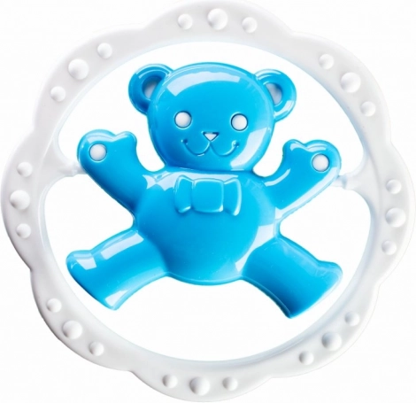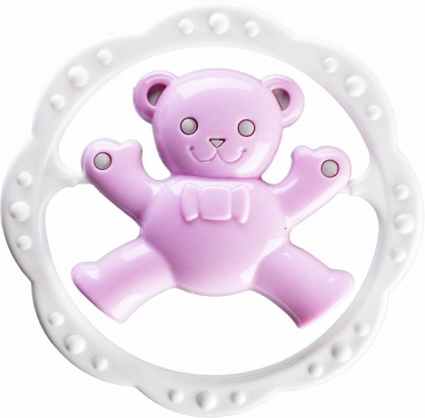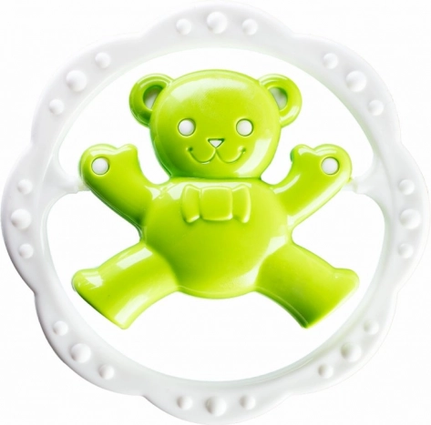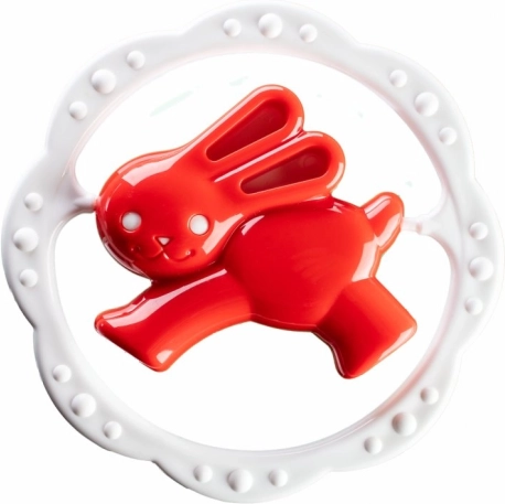 Entdecken Sie die niedliche Rassel mit Beißring in Kreisform, die durch ihr verspieltes Design und die strukturierte Oberfläche für eine angenehme Stimulation des Zahnfleischs überzeugt. Dank des bequemen Griffs liegt das Spielzeug gut in der Hand und animiert zum selbstständigen Entdecken.