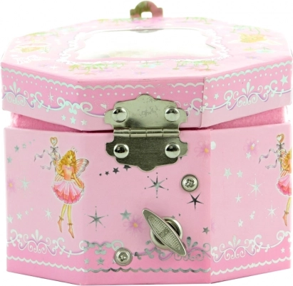 Dieses bezaubernde Musik-Schmuckkästchen in Rosa mit märchenhaften Motiven ist der perfekte Ort zur Aufbewahrung von Ringen, Ohrringen und weiteren Kleinigkeiten. Nach dem Drehen des Schlüsselchens dreht sich die Ballerina anmutig vor dem Spiegel und die Box spielt eine zarte Melodie.