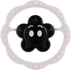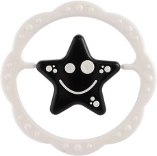 Die strukturierten Ränder fungieren als sanfter Beißring zur Beruhigung gereizten Zahnfleisches. Das kontrastreiche Stern-/Blumenmotiv in der Mitte spricht auch sehr kleine Kinder an, die erst das Fokussieren üben. Das Spielzeug besteht aus hochwertigem Kunststoff und eignet sich für den täglichen Gebrauch zu Hause und unterwegs.