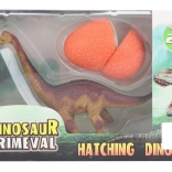 Das öffnende Ei verbirgt ein kleines Dino-Baby. Kinder lieben den Überraschungsmoment und das wiederholte „Schlüpfen“.