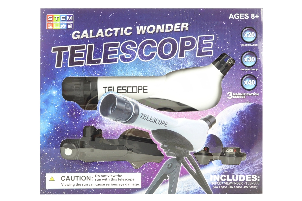 Dieses leichte und stabile Teleskop ist eine hervorragende Wahl für erste Beobachtungen des Mondes, heller Planeten und irdischer Objekte. Dank des Objektivdurchmessers von 60 mm und der variablen Vergrößerungen 20×, 30× und 40× lernen Kinder spielend verschiedene Detailstufen kennen und die Grundlagen der Astronomie.