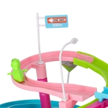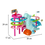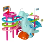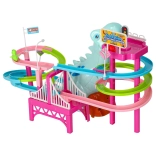 Dinosaurier-Rennbahn mit Rutsche, beweglichen Stufen, LED und Sound