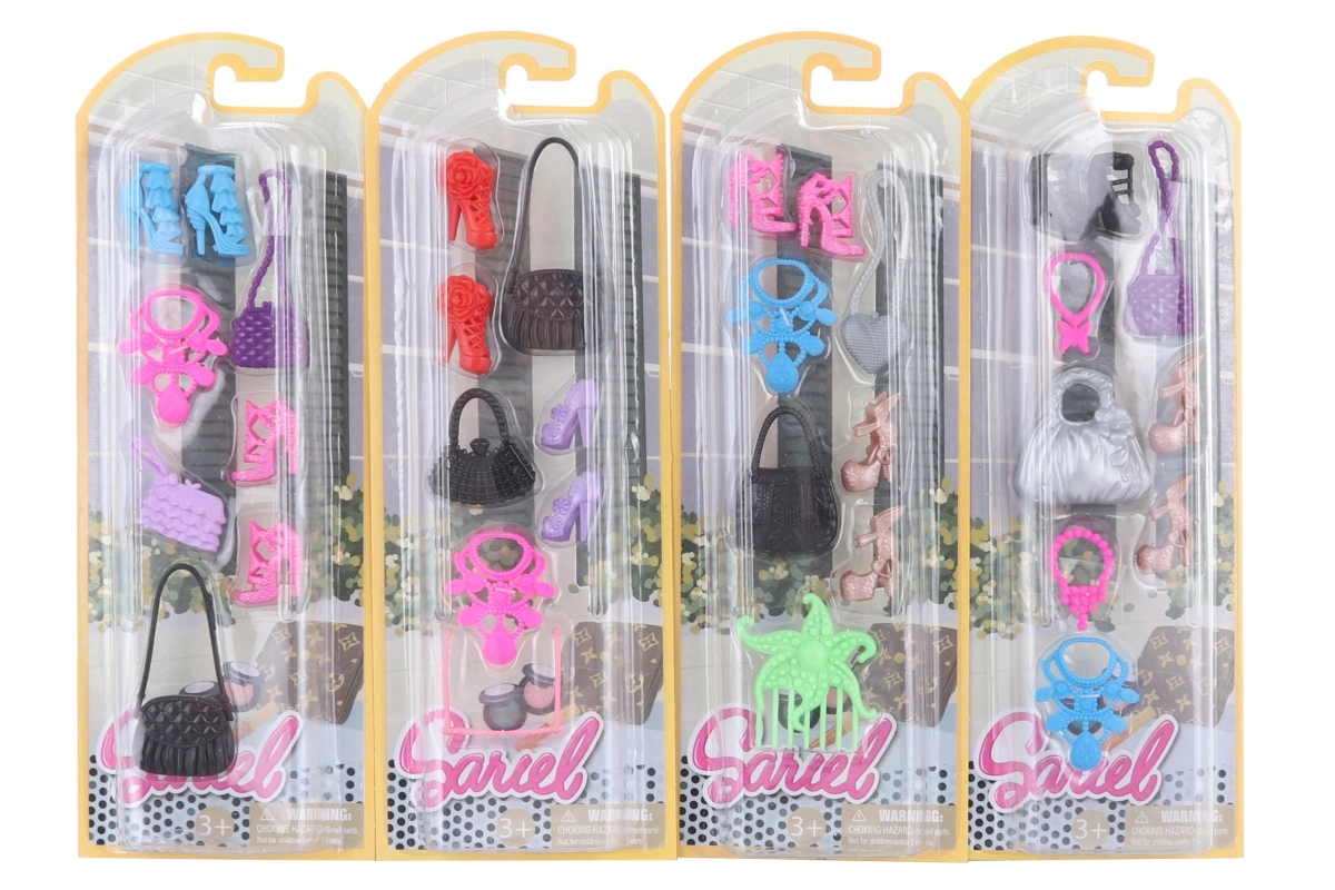 Erweitern Sie die Garderobe Ihrer Puppen um elegante Accessoires, die perfekt zu den unterschiedlichsten Outfits passen. Dieses universelle Set bietet eine bunte Auswahl an Schuhen, Taschen und Schmuck, mit denen Kinder stundenlang stylische Anziehspiele und Rollenspiele genießen.
