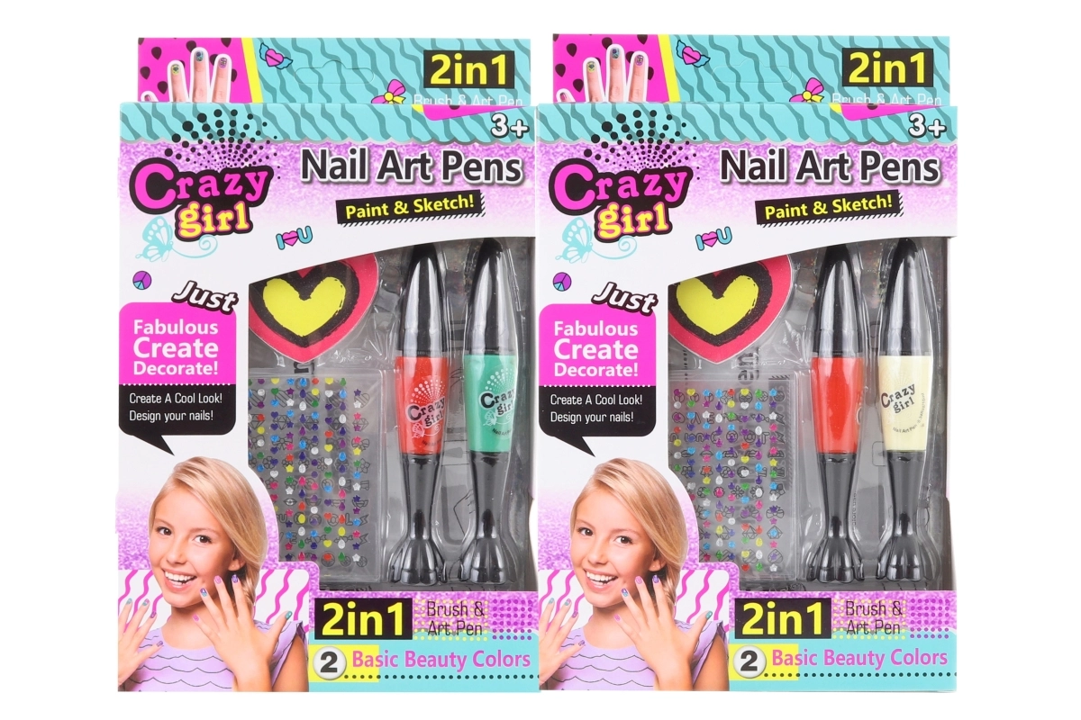 Das Nagelset enthält 2 Nagellacke, eine Feile in Herzform, Aufkleber und selbstklebende Perlen. Verpackungsgröße ca. 16,5 × 26,5 × 4,5 cm. Alter 3+