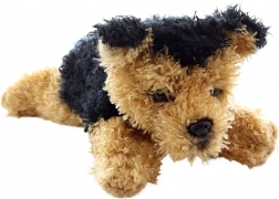 Dieser liegende Plüschhund begeistert Kinder und Tierliebhaber gleichermaßen. Er besteht aus weichem und angenehmem Material, das zum Umarmen einlädt und die Sinneswahrnehmung fördert. Mit seiner Größe von 19 cm ist er perfekt für unterwegs, fürs Bettchen oder den Kinderwagen.