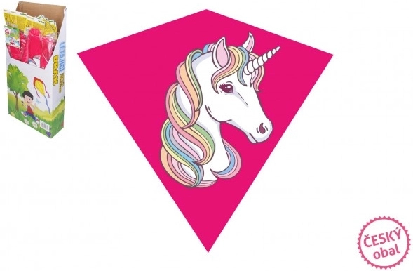Rosa fliegender Drache mit Einhorn-Motiv zieht bei jeder Gelegenheit am Himmel die Blicke auf sich. Ideal für verschiedene Drachenfeste und kindliche Fröhlichkeit.
