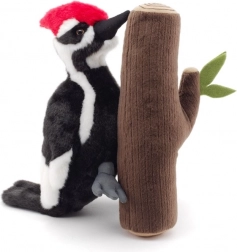 Dieser Plüschspecht mit charakteristischem rotem Schopf und kontrastierendem schwarz-weißem Gefieder ist an einem weichen „Baum“ mit Blättern befestigt und wirkt dadurch besonders realistisch. Dank des weichen Plüschs ist er ideal zum Kuscheln, als Dekoration im Kinderzimmer und für fantasievolles Spielen.