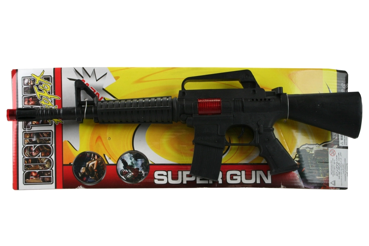 Viel Spaß mit dem schwarzen Maschinengewehr aus Kunststoff, das alle kleinen Fans von Actionspielen begeistert. Das Spielzeug ist leicht, liegt gut in der Hand und erzeugt beim Drücken des Abzugs ratternde Geräusche sowie einen Funkeneffekt, wodurch es noch realistischer wirkt.