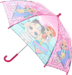 Dieser automatische Regenschirm mit L.O.L. Puppenmotiv ist ideal für Kinder, dank der stabilen Stahlkonstruktion und des bequemen Plastikgriffs.