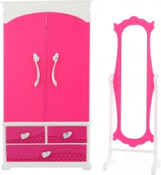 Der GLORIE-Kleiderschrank mit Spiegel ist eine tolle Ergänzung für die Welt der Puppen. Er bietet öffnende Türen und Schubladen zur Aufbewahrung von Kleidchen und Accessoires sowie praktische Kleiderbügel zum Aufhängen der Lieblingsoutfits. Dank des beiliegenden Spiegels können Kinder neue stylische Kombinationen leicht zusammenstellen und ausprobieren.