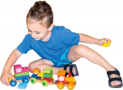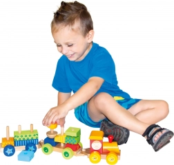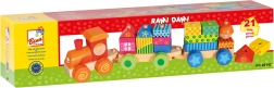 Der multifunktionale Holz-Zug ist nicht nur ein Nachziehspielzeug, sondern auch ein Konstruktionsspiel, das Kindern hilft, ihre Kreativität zu entfalten. Zum Zug gehören drei Fahrgestelle und 18 verschiedene Bausteine, die nach Belieben gestapelt werden können.