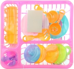 Mit diesem umfangreichen Kochspiel-Set haben Kinder alles zur Hand, was sie für die Zubereitung von „Leckereien“ und fürs Aufräumen nach dem Kochen brauchen. Das Abtropfgestell hält das Geschirr ordentlich an seinem Platz und fördert grundlegende Ordnungsgewohnheiten. Leichter Kunststoff liegt gut in der Hand und ist ideal für kleine Kinderhände.