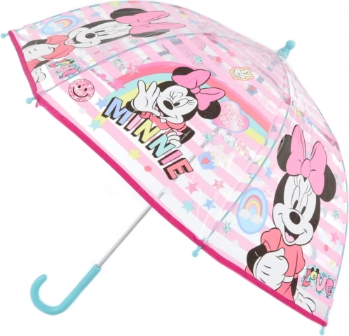 Transparenter manueller Regenschirm mit MINNIE-Motiv. Leicht, kompakt und stilvolles Accessoire für Regen. Maße ca. 72 × 72 × 64 cm. Ideal für Kinder und Fans.