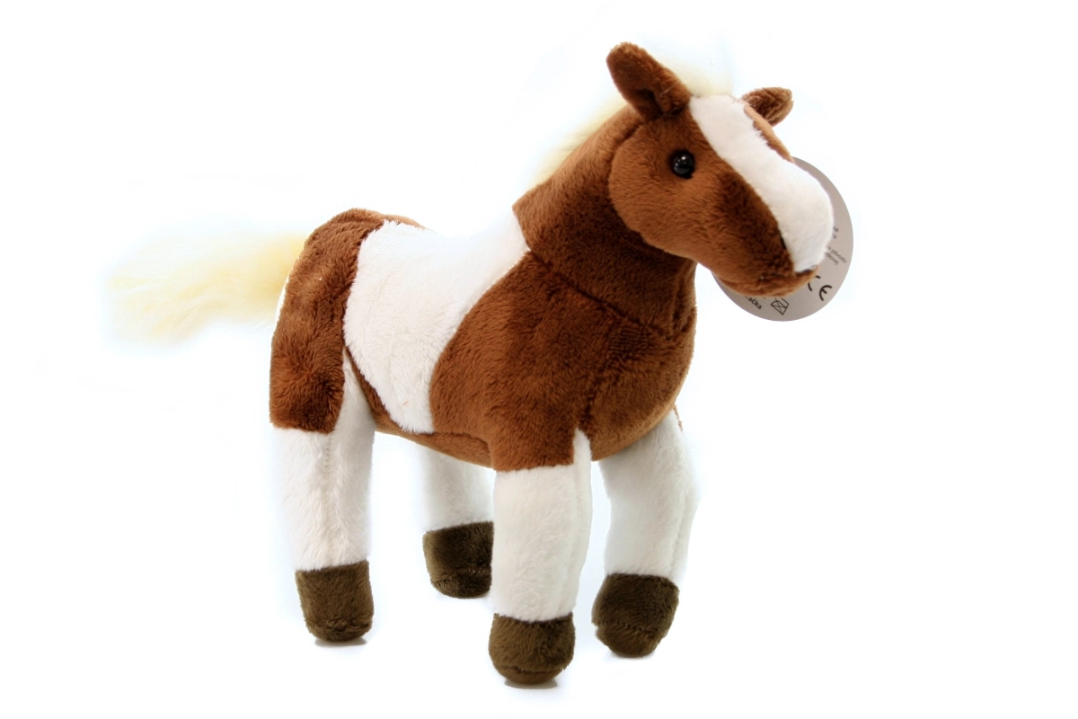 Dieses braun-weiße Plüschpferdchen mit geschecktem Muster und weißer Mähne ist der perfekte Begleiter für Kinder und Sammler von Plüschtieren. Dank des weichen Materials ist es angenehm zu berühren und für Babys ab 0+ sicher. Die stehende Ausführung verleiht dem Spielzeug ein realistisches Aussehen und erleichtert das Aufstellen im Regal.