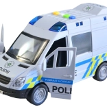 Dieser Polizeivan begeistert alle Kinder, die actionreiche Geschichten und Einsätze lieben. Das Fahrzeug fährt mit Schwungrad, verfügt über ein Blaulicht mit blauen Warnleuchten und spielt authentische tschechische Ansagen von Besatzung und Leitstelle ab – wie bei einem echten Polizeieinsatz. Öffnende Türen fördern realistisches Spiel und die Fantasie.