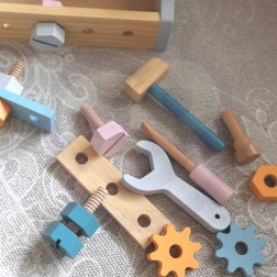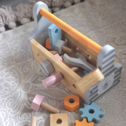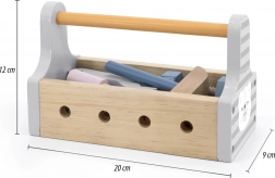 Hergestellt aus natürlichem Buchenholz mit pastellfarbenen Akzenten, ist der Werkzeugkasten nicht nur schön, sondern auch robust.