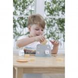 Der Holztoaster ist so konzipiert, dass er Kindern eine sichere und unterhaltsame Art des Küchenspiels bietet. Mit einem einfachen Design und einer robusten Struktur ist er ideal für Fantasiespiele und die Entwicklung motorischer Fähigkeiten.
