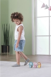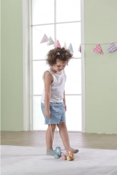 Das Spielzeug besteht aus strapazierfähigem, lackiertem Holz und ist mit ungiftigen Farben kindersicher bemalt. Glatte Kanten und eine angenehme Größe sind ideal für kleine Kinderhände. Beim gemeinsamen und alleinigen Spiel trainieren Kinder Kreativität, Feinmotorik und Vorstellungskraft.