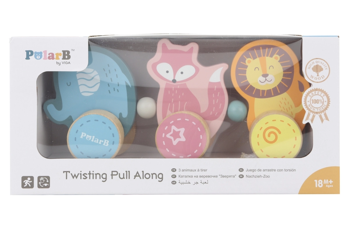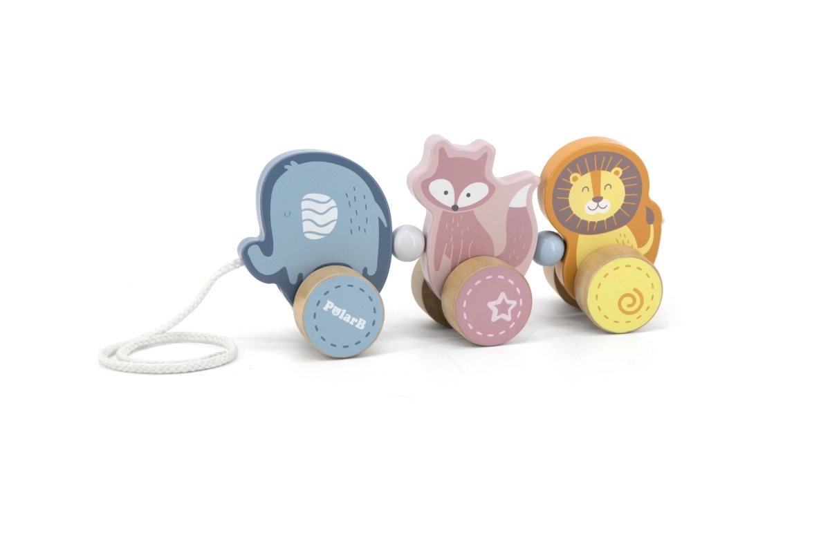 Niedliche Holz-Ziehtiere der Marke VIGA aus der POLARB-Kollektion begeistern kleine Entdecker. Das Set aus drei Tieren – Elefant, Fuchs und Löwe – auf Rädern unterstützt die ersten Schritte, fördert die Feinmotorik und die Koordinationsfähigkeiten. Sicher, robust und in zarten Pastellfarben werden sie zu beliebten Begleitern beim Spielen zu Hause und unterwegs.