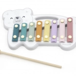 Das Holzxylophon in Eisbärform vereint verspielte Ästhetik mit einem funktionalen Musikinstrument. Pastellfarbene Metalllamellen erzeugen angenehme Töne beim Anschlagen mit dem Holzschlägel und motivieren Kinder auf natürliche Weise, mit Klängen und Rhythmus zu experimentieren.