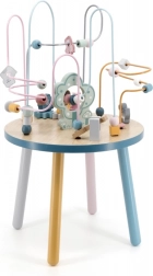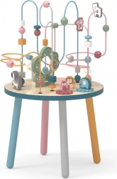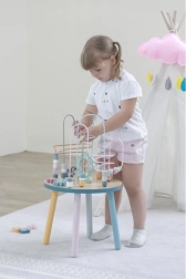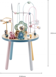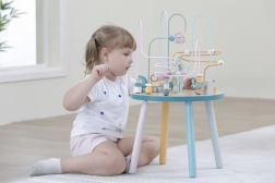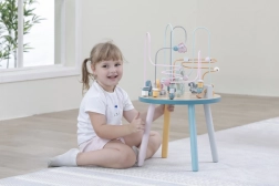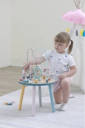 Das Perlenlabyrinth auf dem stabilen Holztisch lädt Kinder zum Entdecken ein. Bunte Formen und niedliche Tiere (Bär, Fuchs, Igel) motivieren zu Fingerbewegungen, präzisem Greifen und zum Erfinden eigener Geschichten. Ideal für den häuslichen „Montessori“-Stil des Lernens durch Spiel, der Geduld, Konzentration und Vorstellungskraft fördert.